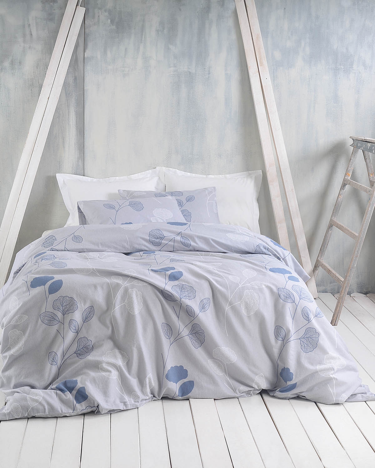 Morin γκρι μπλε σετ παπλωματοθήκη ημίδιπλο flannel 160x240 εκ