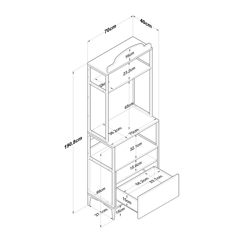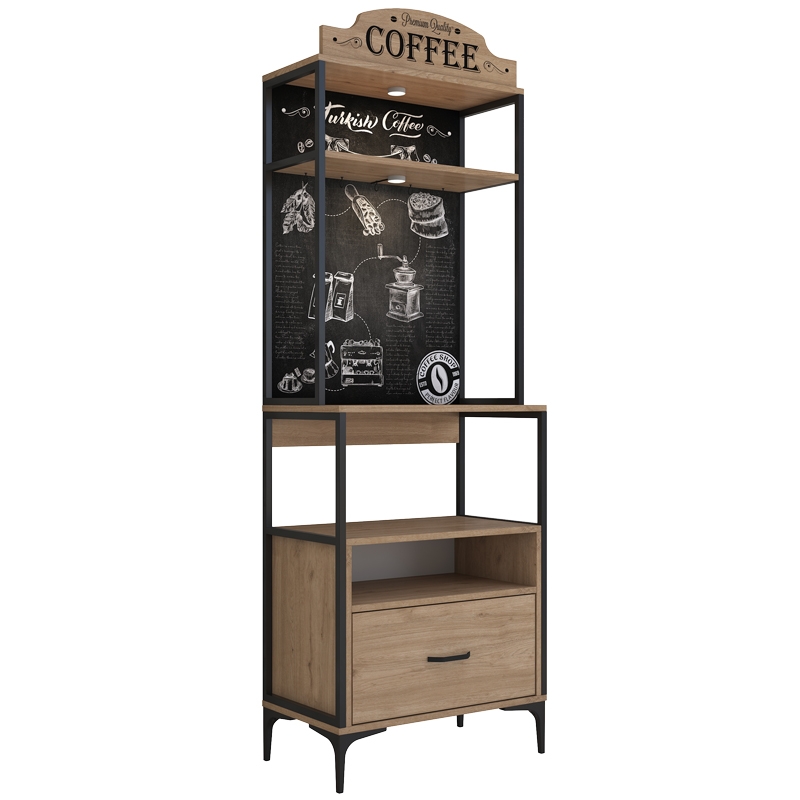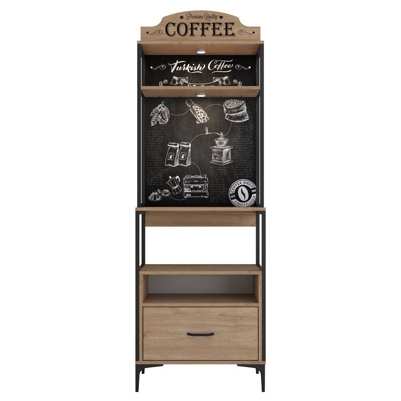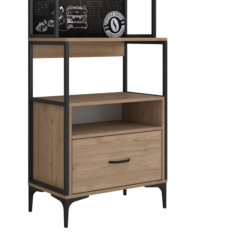 Mπουφές με ράφι Ragren pakoworld καρυδί μελαμίνης-μαύρο μέταλλο 70x40x190.8εκ<br><br>Επιλέξτε για το σπίτι σας έναν μπουφέ που θα τραβήξει τα βλέμματα χάρη στον ιδιαίτερο σχεδιασμό του. Ο Ragren κάνει την αποθήκευση πιο εύκολη από ποτέ χάρη στις απεριόριστες επιλογές οργάνωσης των αντικειμένων σας. H ραφιέρα που εμπεριέχεται στο πάνω μέρος απογειώνει την χρηστικότητα του επίπλου.<br><br>Τεχνικά χαρακτηριστικά:<br>* Κατασκευή από μοριοσανίδα με επένδυση μελαμίνης υψηλής ποιότητας, με αντοχή στην καταπόνηση, την φθορά και τον χρόνο. είναι ένας τύπος επιφάνειας κατασκευασμένης από μοριοσανίδα, η οποία είναι μια είδηση ξύλου που παράγεται από ξύλο που έχει ψιλοκομηθεί, συνθετικά υλικά και συνθετική ρητίνη. Η επένδυση μελαμίνης είναι μια λεία επιφάνεια που καλύπτεται με μια στρώση μελαμίνης, η οποία είναι ένα είδος σκληρού πλαστικού.<br>* Προσφέρεται σε χρώμα καρυδί-μαύρο.<br>* Στήριξη πάνω σε μεταλλικά πόδια μεγάλης αντοχής μαύρου χρώματος.<br><br>Διάσταση προϊόντος:<br>Μήκος: 70 εκ.<br>Πλάτος: 40 εκ.<br>Ύψος: 190.8 εκ.<br><br>Παρατηρήσεις:<br>Το προϊόν παραδίδεται σε εργοστασιακή συσκευασία και με αναλυτικό οδηγό συναρμολόγησης.<br>Η χρωματική απόχρωση του προϊόντος ενδέχεται να διαφέρει ελαφρώς σε σχέση με την φωτογραφική απεικόνισή του στην οθόνη σας.<br>