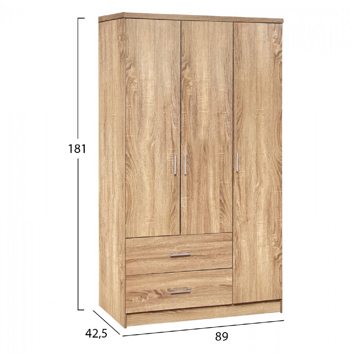 Ντουλάπα μελαμίνης τρίφυλλη σε χρώμα Sonama.<br />