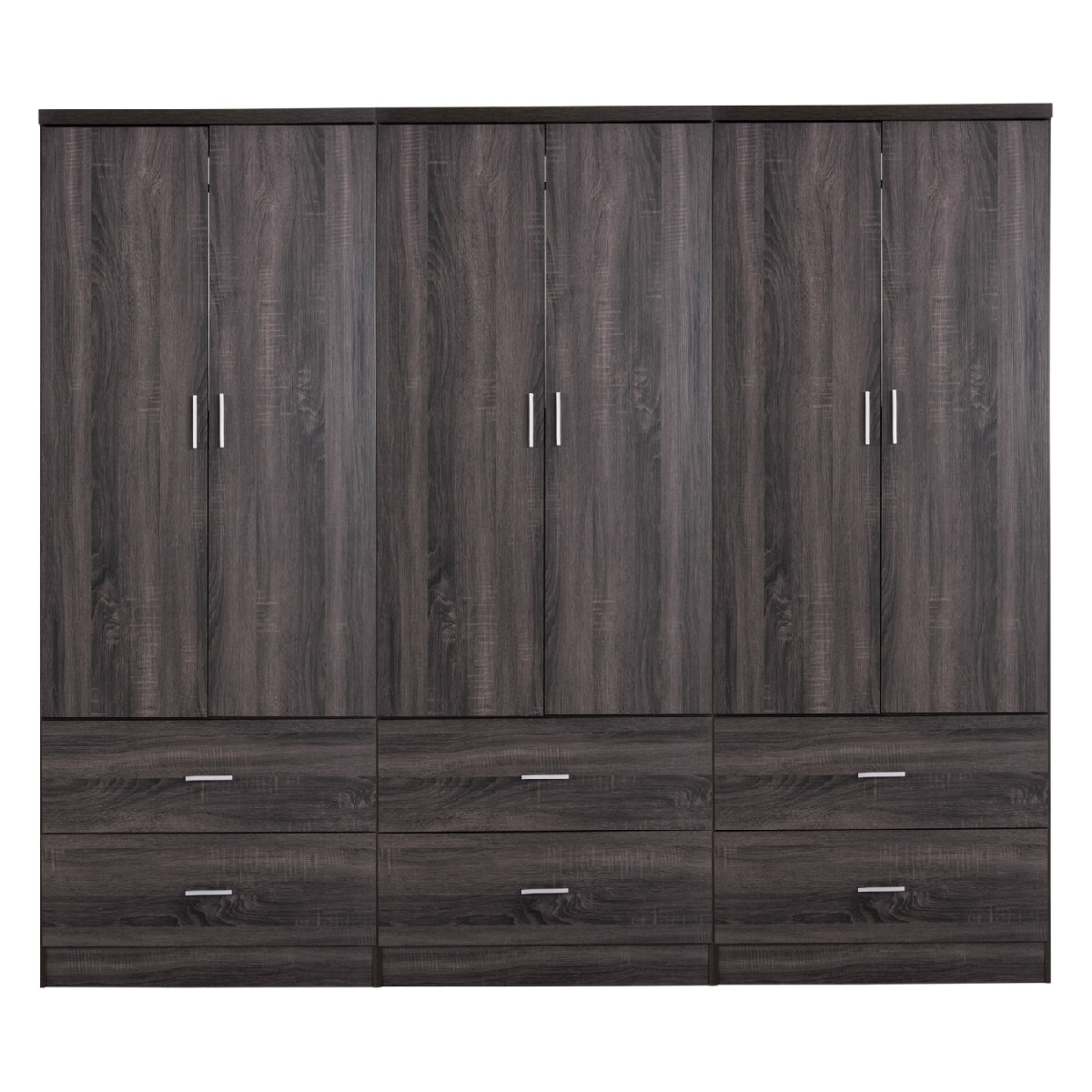 Γνωρίστε την 6-φυλλη ντουλάπα-γκαρνταρόμπα REINA. Πρόκειται για μια μεγάλη ντουλάπα με 6 πόρτες, και στο εσωτερικό της υπάρχει μόνο μια INOX μπάρα για κρέμαση ρούχων. Κάτω ακριβώς από τον χώρο της γκαρνταρόμπας υπάρχουν και 6 ευρύχωρα συρτάρια. Οι πόρτες αλλά και τα συρτάρια ανοίγουν με καλαίσθητα ασημί χερούλια. Είναι κατασκευασμένη από μελαμίνη σε ΑΝΘΡΑΚΙ χρώμα και αισθητικά μπορεί να ταιριάξει με πολλά άλλα στυλ, χάρη και στις «καθαρές» γραμμές της.<br />