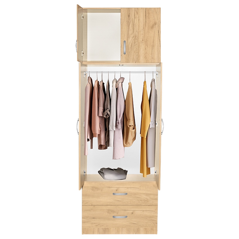 * Περιλαμβάνει δύο μεγάλες πόρτες, εσωτερικά φέρει ράγα για κρεμάστρες και κάτω δύο μεγάλα συρτάρια για την αποθήκευση ρούχων και αξεσουάρ.<br />