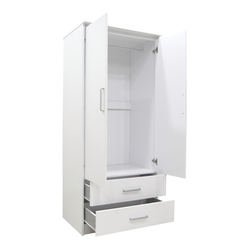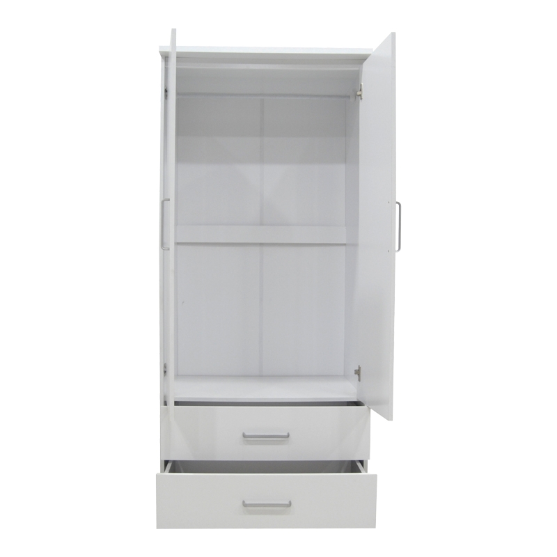 <li>Περιλαμβάνει δύο μεγάλες πόρτες, εσωτερικά φέρει ράγα για κρεμάστρες και κάτω δύο μεγάλα συρτάρια για την αποθήκευση ρούχων και αξεσουάρ.</li>