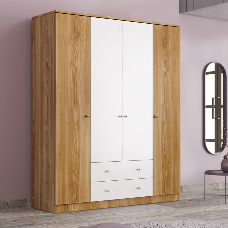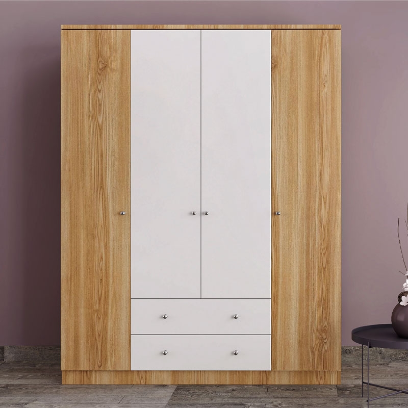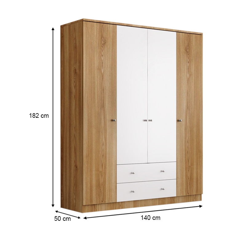 Ντουλάπα ρούχων Stefan Megapap τετράφυλλη χρώμα sapphire oak - λευκό 140x50x182εκ.<br></span>