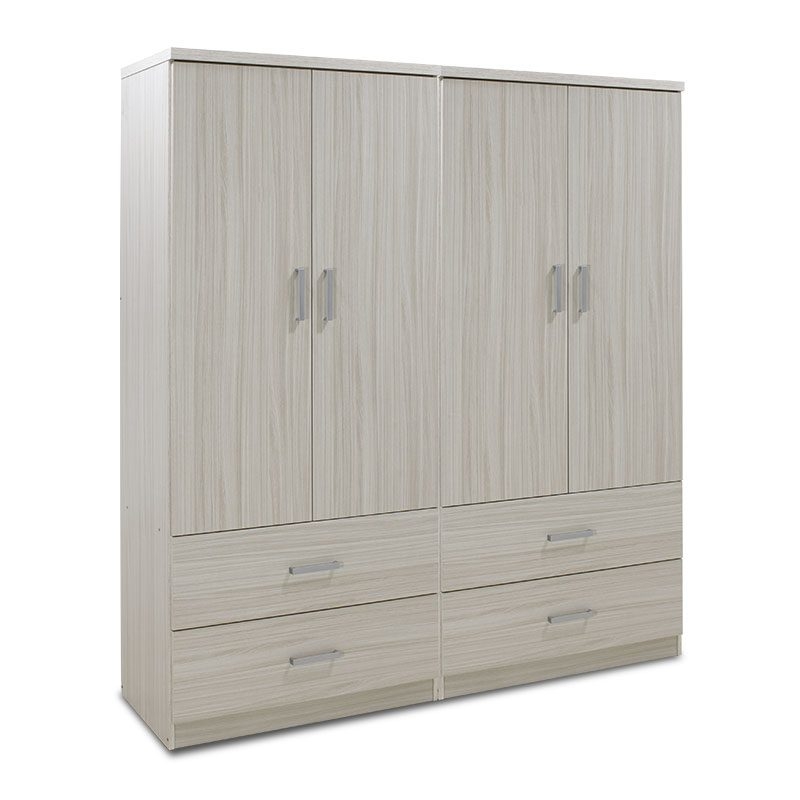 <p>Τεχνικά χαρακτηριστικά:<br />* Σκελετός κατασκευασμένος από melamine 16 mm (καπάκι: 3cm) & επένδυση 3D Wood Paper υψηλής ποιότητας, με αντοχή στην καταπόνηση, την φθορά και τον χρόνο. Προσφέρεται σε χρώμα λευκό γκρι. <br />* Περιλαμβάνει τέσσερις μεγάλες πόρτες, εσωτερικά φέρει δύο ράγες για κρεμάστρες και τέσσερα συρτάρια για την αποθήκευση ρούχων και αξεσουάρ.<br />* Αποτελείται από δύο ντουλάπες Lego που μπορούν να τοποθετηθούν και ανεξάρτητα.</p>