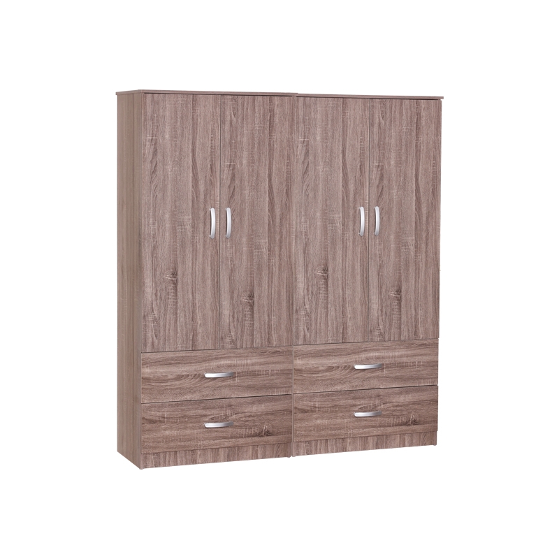 <li>Περιλαμβάνει τέσσερις μεγάλες πόρτες, εσωτερικά φέρει ράγα για κρεμάστρες και κάτω δύο μεγάλα συρτάρια για την αποθήκευση ρούχων και αξεσουάρ.</li>