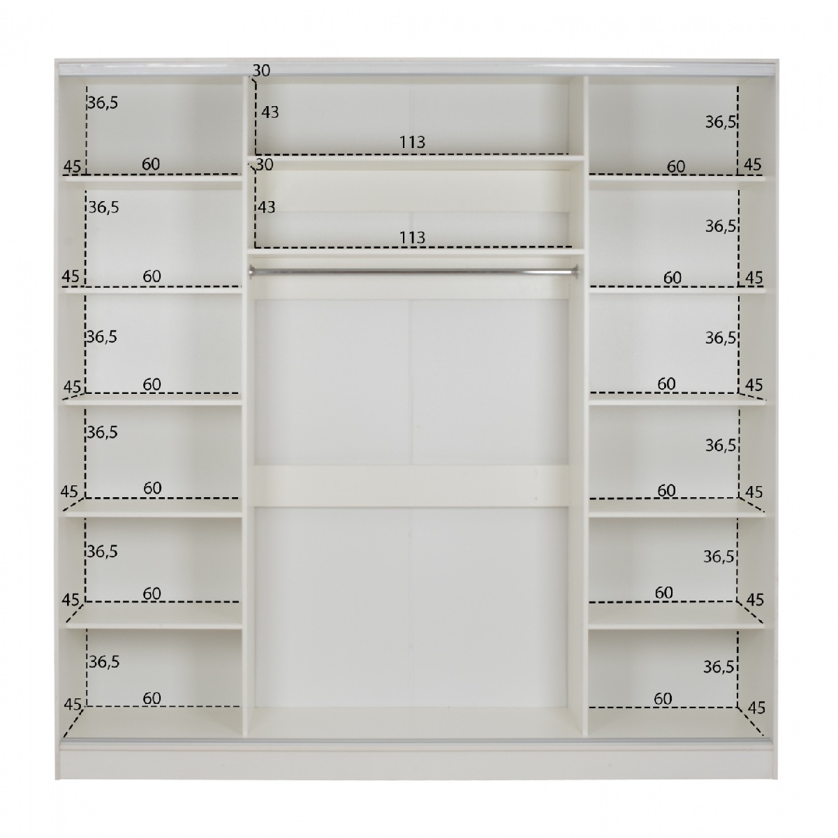 Η ντουλάπα υπνοδωματίου διαθέτει λιτό σχέδιο και το εσωτερικό της περιλαμβάνει στις δύο άκρες, δεξιά και αριστερά, ράφια,που δημιουργούν 6 ευρύχωρα ράφια για αποθήκευση. <br />