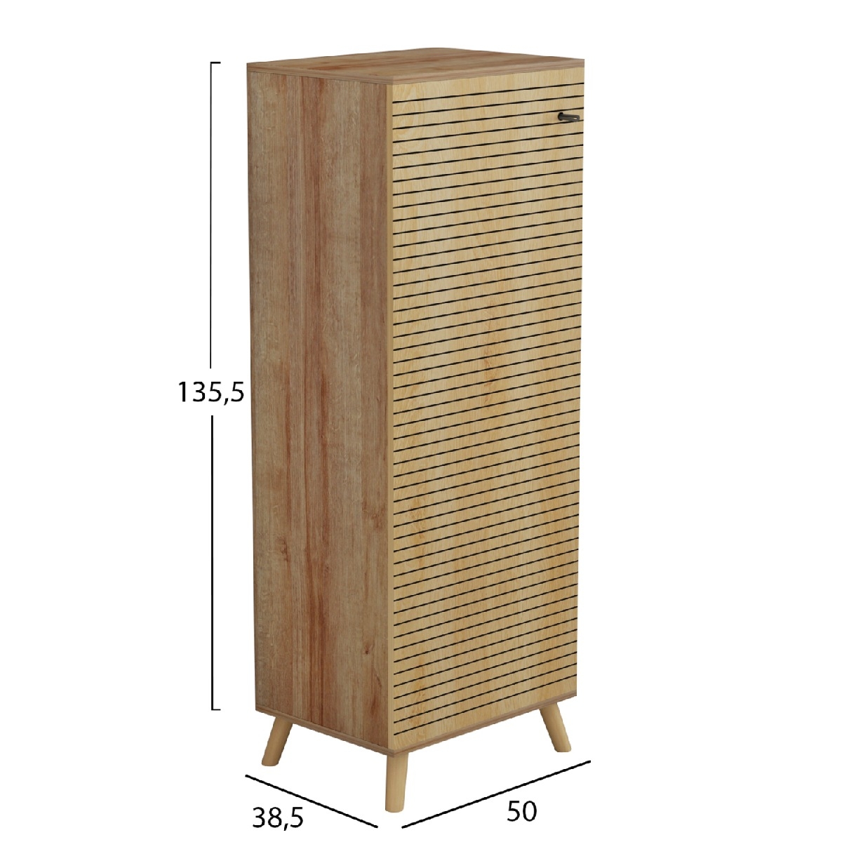 Σας παρουσιάζουμε την παπουτσοθήκη-ντουλάπι μελαμίνης ALVARO σε ΦΥΣΙΚΟ χρώμα ξύλου. Πρόκειται για ένα ψηλό σχετικά ντουλάπι με 1 πόρτα σε χρώμα, επίσης, ΦΥΣΙΚΟΥ ξύλου με ανθρακί ρίγες. Τα πόδια είναι ξύλινα και ψηλά ενώ στο εσωτερικό έχει 7 ράφια (άρα, 8 επίπεδα τοποθέτησης). Σκοπός μας είναι να σας βοηθήσουμε να οργανώσετε και να βελτιώσετε με τον καλύτερο δυνατό τρόπο οτιδήποτε θελήσετε. <br />