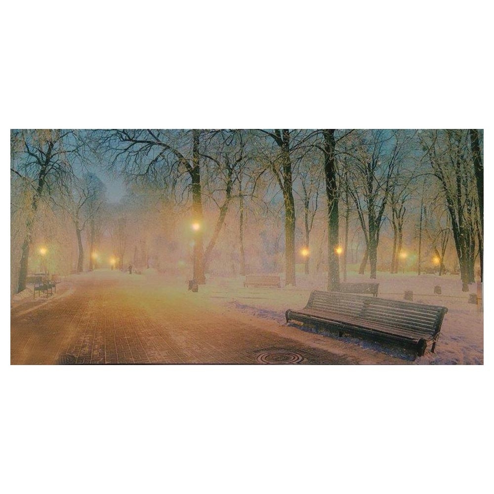 Πίνακας σε καμβά με θέμα χειμωνιάτικο τοπίο και Led λαμπάκια 60x30 εκ