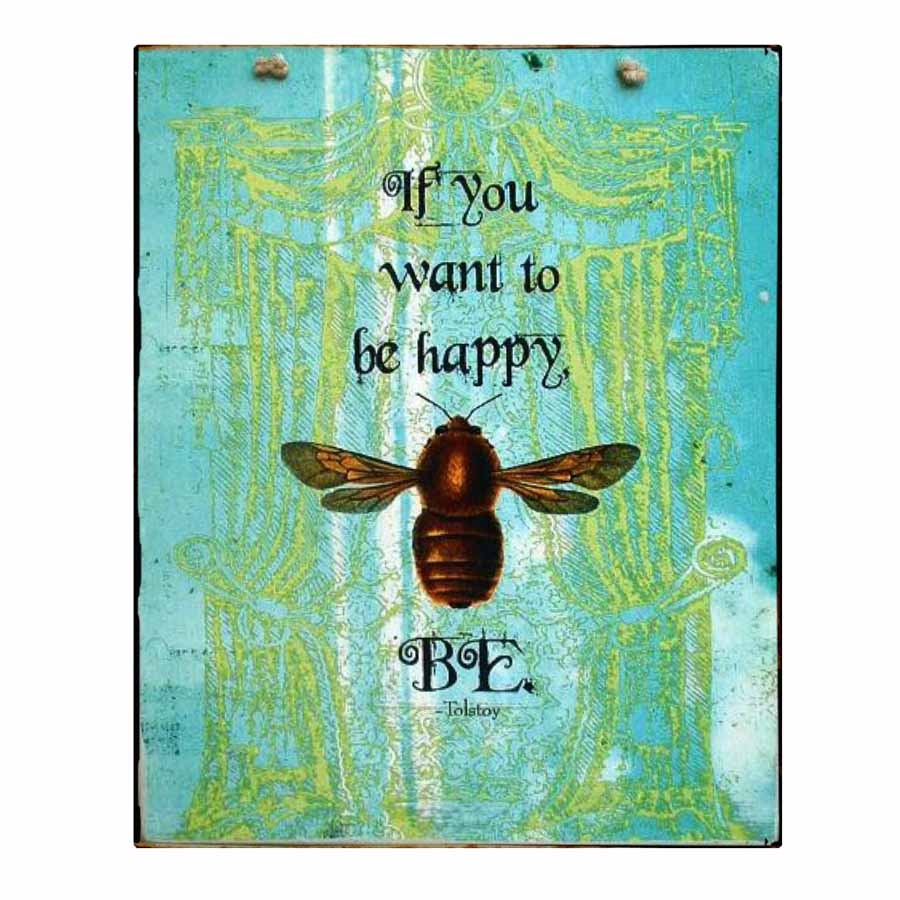 Πίνακας χειροποίητος bee happy 20x25 εκ