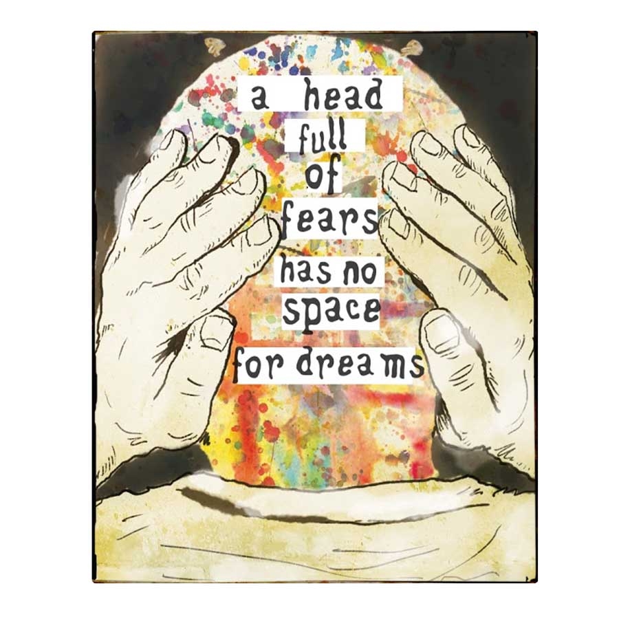 Πίνακας χειροποίητος head full of fears 20x25 εκ