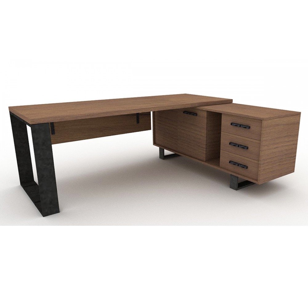 Platinum γραφείο παραλληλόγραμμο με πλευρικό και μαύρα μεταλλικά πόδια