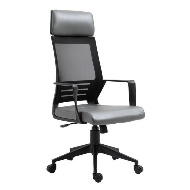 Πολυθρόνα γραφείου mesh μαύρο με pu γκρι 60x65x114/124 εκ