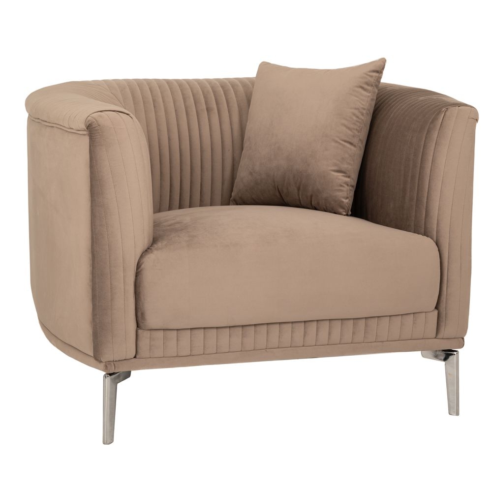 Πολυθρόνα με βελούδινη επένδυση σε καφέ χρώμα και μεταλλικά ασημί ποδαράκια 109x91x75 εκ