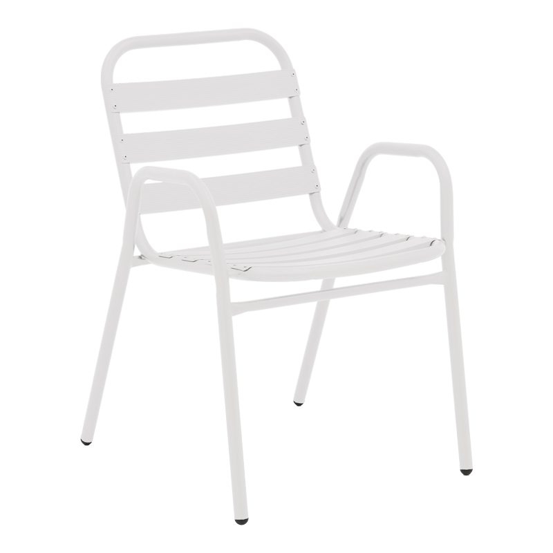 <li>Σταθερός σκελετός από μέταλλο εξαιρετικής ποιότητας με αντοχή σε φθορά και χρόνο, ενώ τα κομμάτια έδρας και πλάτης είναι κατασκευασμένα από φέτες αλουμινίου. Το μέταλλο παρέχει ανθεκτικότητα και σταθερότητα, ενώ οι φέτες αλουμινίου προσθέτουν ελαφρότητα και μια μοντέρνα αίσθηση στον σχεδιασμό. Η πολυθρόνα αυτή είναι ιδανική για χρήση σε εξωτερικούς χώρους, καθώς η ανθεκτικότητα στις καιρικές συνθήκες του αλουμινίου την καθιστά ανθεκτική σε έκθεση στον ήλιο και την υγρασία.</li>