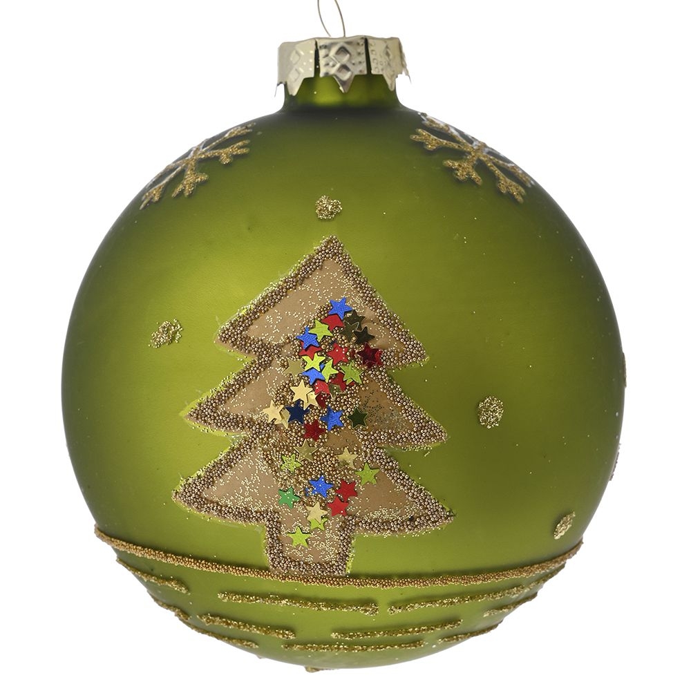 Πράσινη γυάλινη μπάλα με χριστουγεννιάτικο δέντρο σε χρυσή απόχρωση σετ έξι τεμαχίων 8 εκ