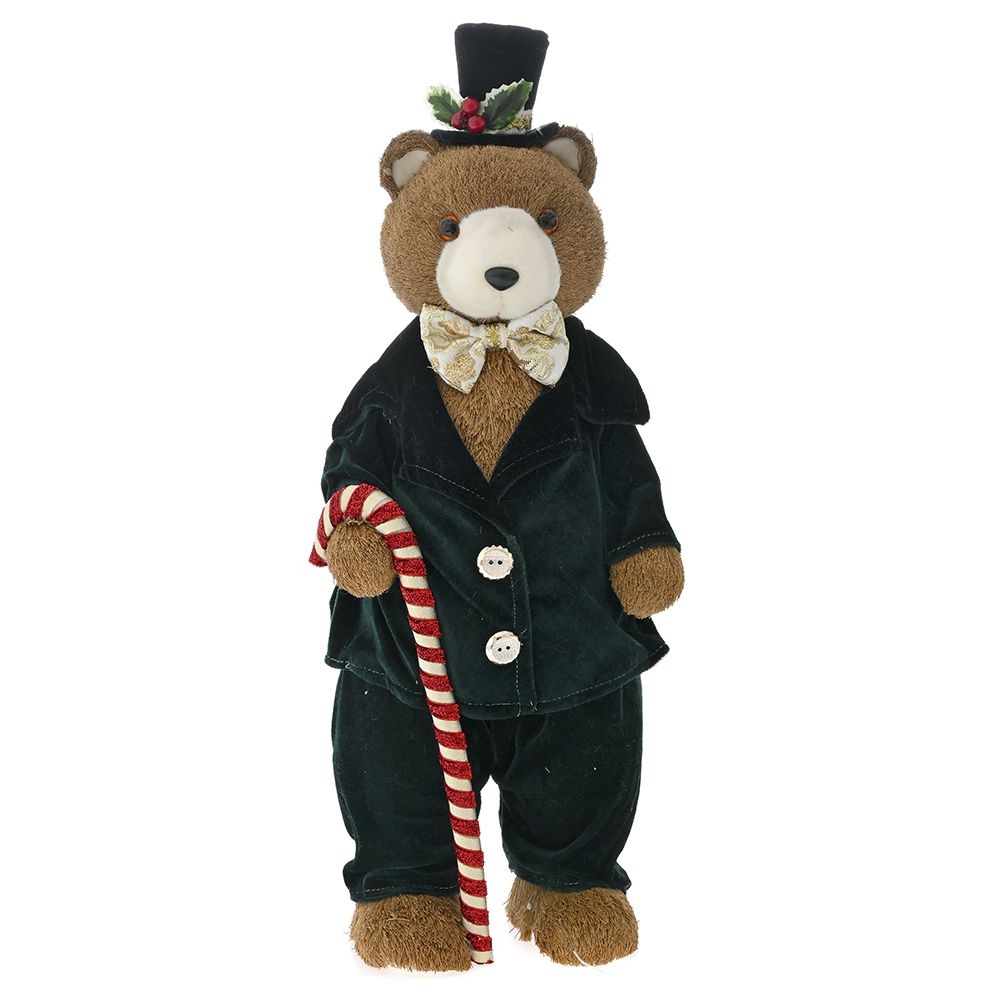Πράσινος αρκούδος με καπέλο και μπαστούνι χριστουγεννιάτικος διακοσμητικός 20x23x57 εκ