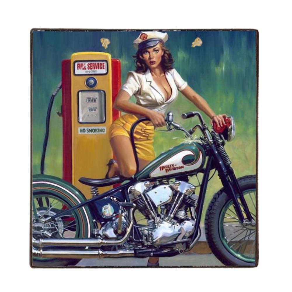 Retro ξύλινο χειροποίητο πινακάκι Harley pin up girl