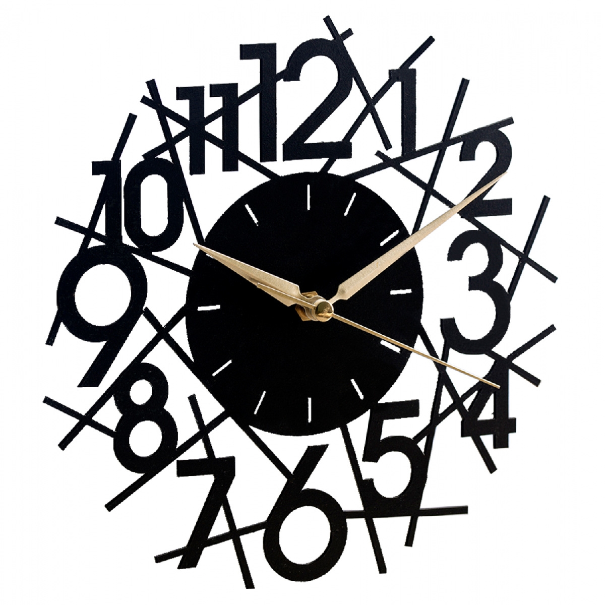 Ρολόι τοίχου σε μαύρη απόχρωση με χρυσές λεπτομέρειες στους δείκτες.<br />