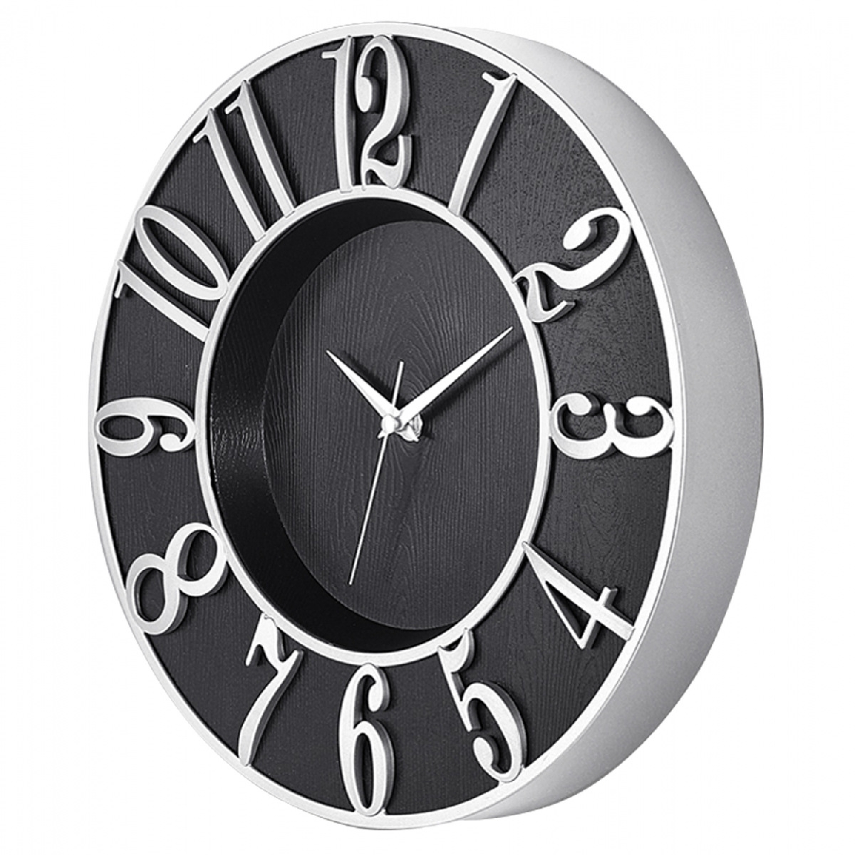 Ρολόι τοίχου σε μαύρη με ασημί απόχρωση.<br />