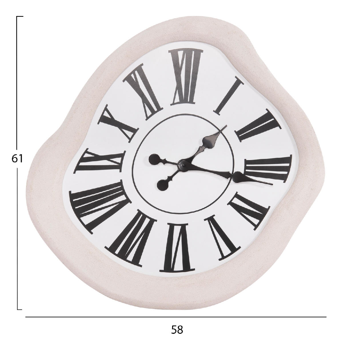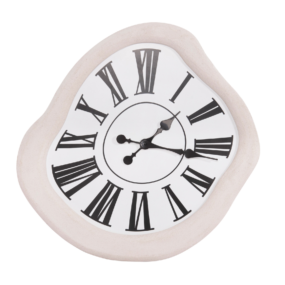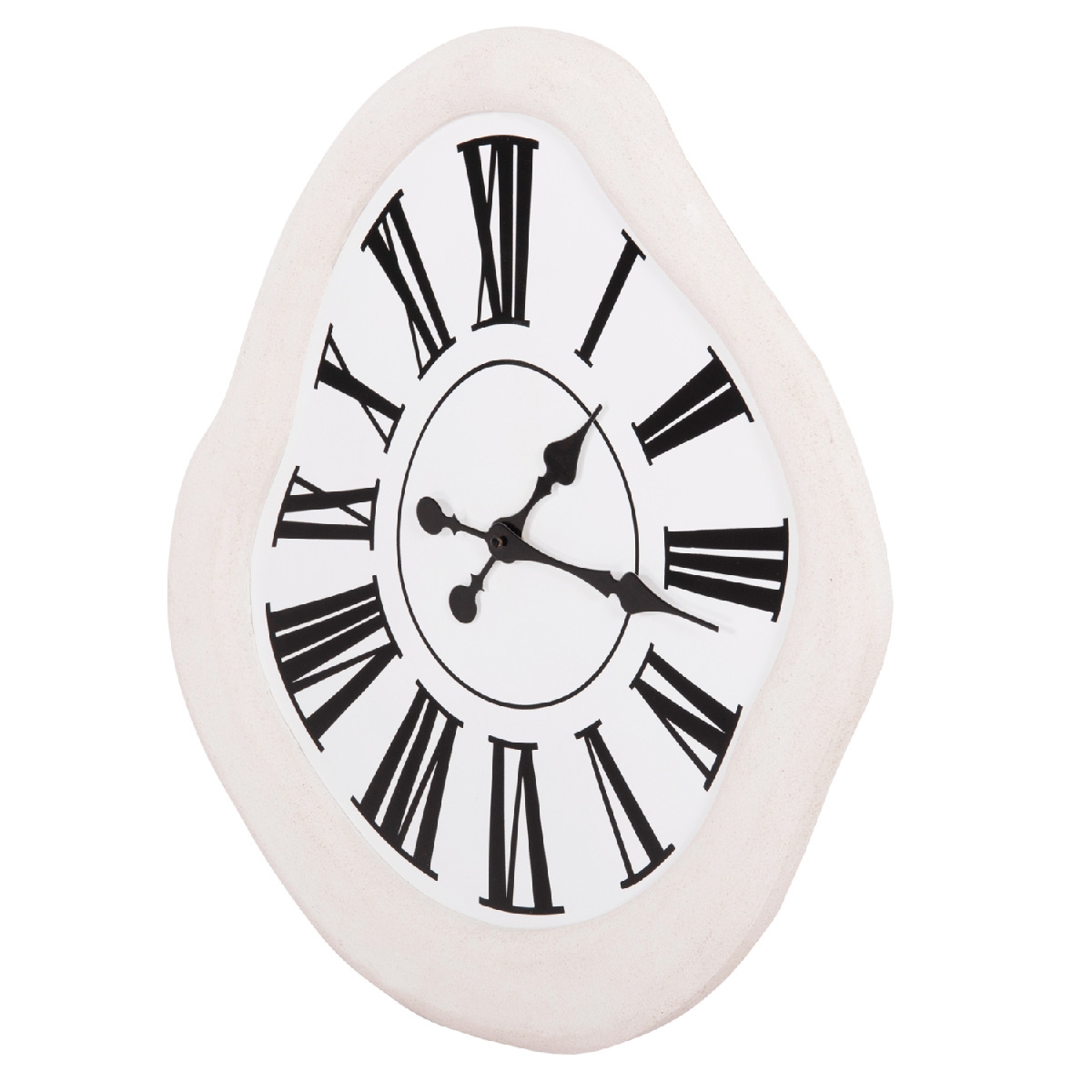 Ένα ρολόι τοίχου είναι μια κλασική διακοσμητική ιδέα που ποτέ δεν θα παλιώσει. Αποτελεί μια όμορφη και απαραίτητη αισθητική αλλά και χρηστική προσθήκη για κάθε δωμάτιο του σπιτιού ή της επιχείρησής σας. Το ΗΜ4515 της σειράς επίπλων SANTORINI είναι ένα χειροποίητο ρολόι τοίχου με ΥΠΟΛΕΥΚΟ σκελετό σε ακανόνιστο σχήμα, ενώ τα νούμερα είναι λατινικά σε ΜΑΥΡΟ χρώμα, όπως και οι δείκτες. <br />