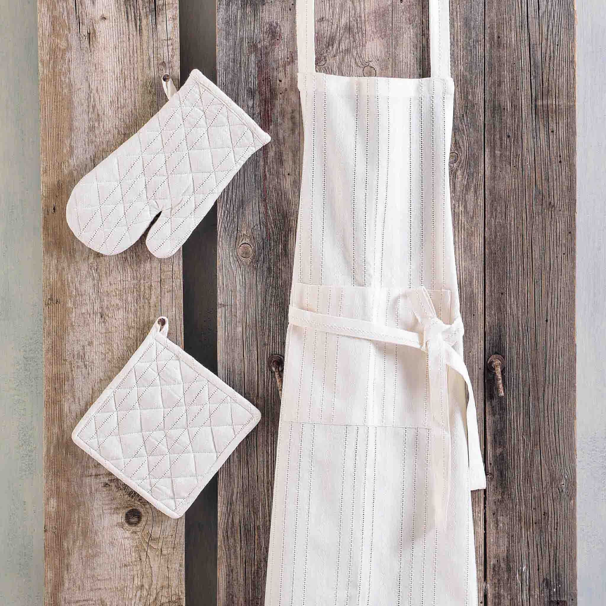 Savoca σετ με ποδιά και γάντια κουζίνας σε εκρού χρώμα
