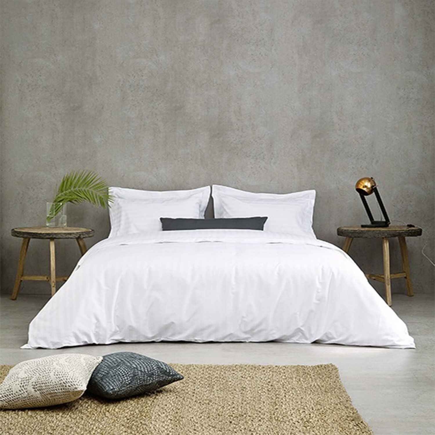 Σεντόνι Ξενοδοχείου White 230 Κλωστές CVC Σατέν ρίγα 1cm 60% Βαμβάκι Πενιέ 40% Πολυέστερ Ημίδιπλο 185x280cm Βαμβάκι-Πολυέστερ