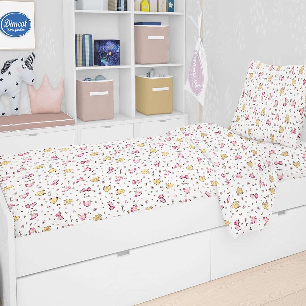 Σεντόνι Παιδικό Σετ 2Τμχ Elephant 172 Pink DimCol Μονό 160x240cm 100% Βαμβάκι
