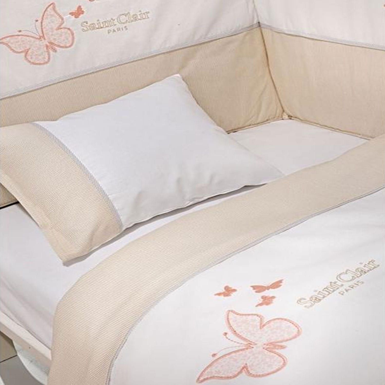 Σεντόνια Βρεφικά Σετ 3τμχ Contessa White - Beige Saint Clair Κούνιας 110x170cm Χωρίς Λάστιχο 100% Βαμβάκι