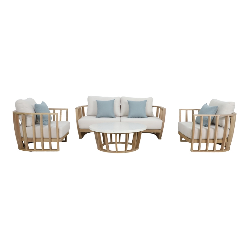 Σετ σαλονιού 4τμχ Eron pakoworld μασίφ ξύλο ευκαλύπτου-μπεζ ύφασμα<br><br>Το σαλόνι κήπου Eron αποτελείται από ενα καναπέ διθέσιο, δυο πολυθρόνες και ένα τραπέζι. Είναι κατασκευασμένο από ανθεκτικό φυσικό ξύλο ευκαλύπτου. Η φυσική και ισχυρή αντοχή του σε συνδυασμό και με την ομορφιά του το καθιστούν ιδανικό ξύλο για έπιπλα εξωτερικού χώρου. Μπορεί να χρησιμοποιηθεί για οικιακή και επαγγελματική χρήση.