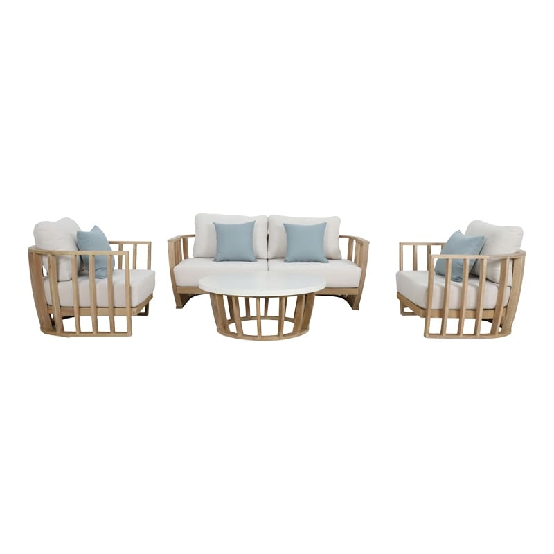 Σετ σαλονιού 4τμχ Eron pakoworld μασίφ ξύλο ευκαλύπτου-μπεζ ύφασμα