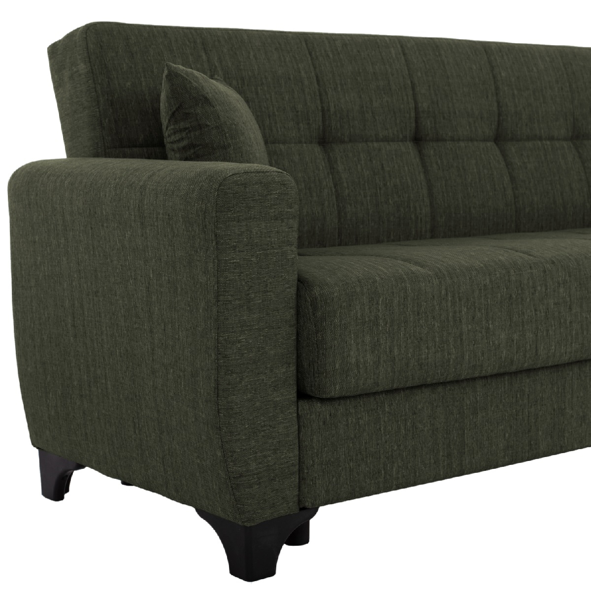 Η επένδυση των καναπέδων έχει γίνει με ύφασμα εξαιρετικής ποιότητας, ενώ τα γεμίσματα τόσο στο κάθισμα, όσο και στην πλάτη είναι από μέτριας σκληρότητας αφρώδες υλικό που προσφέρει άνεση και ποιότητα στον ύπνο, όταν μετατρέπεται σε κρεβάτι.<br />