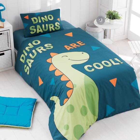 Σετ σεντόνια μονά Dinosaurs. Το σετ περιλαμβάνει 1 τεμάχιο πανωσέντονο σε διάσταση 165x240 , 1 τεμάχιο κατωσέντονο σε διάσταση 165x240 και 1 τεμάχιο μαξιλαροθήκη σε διάσταση 50x70 .Η ποιότητά του είναι cotton 100%