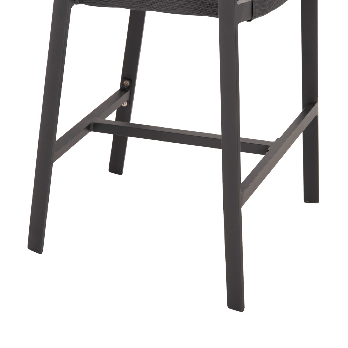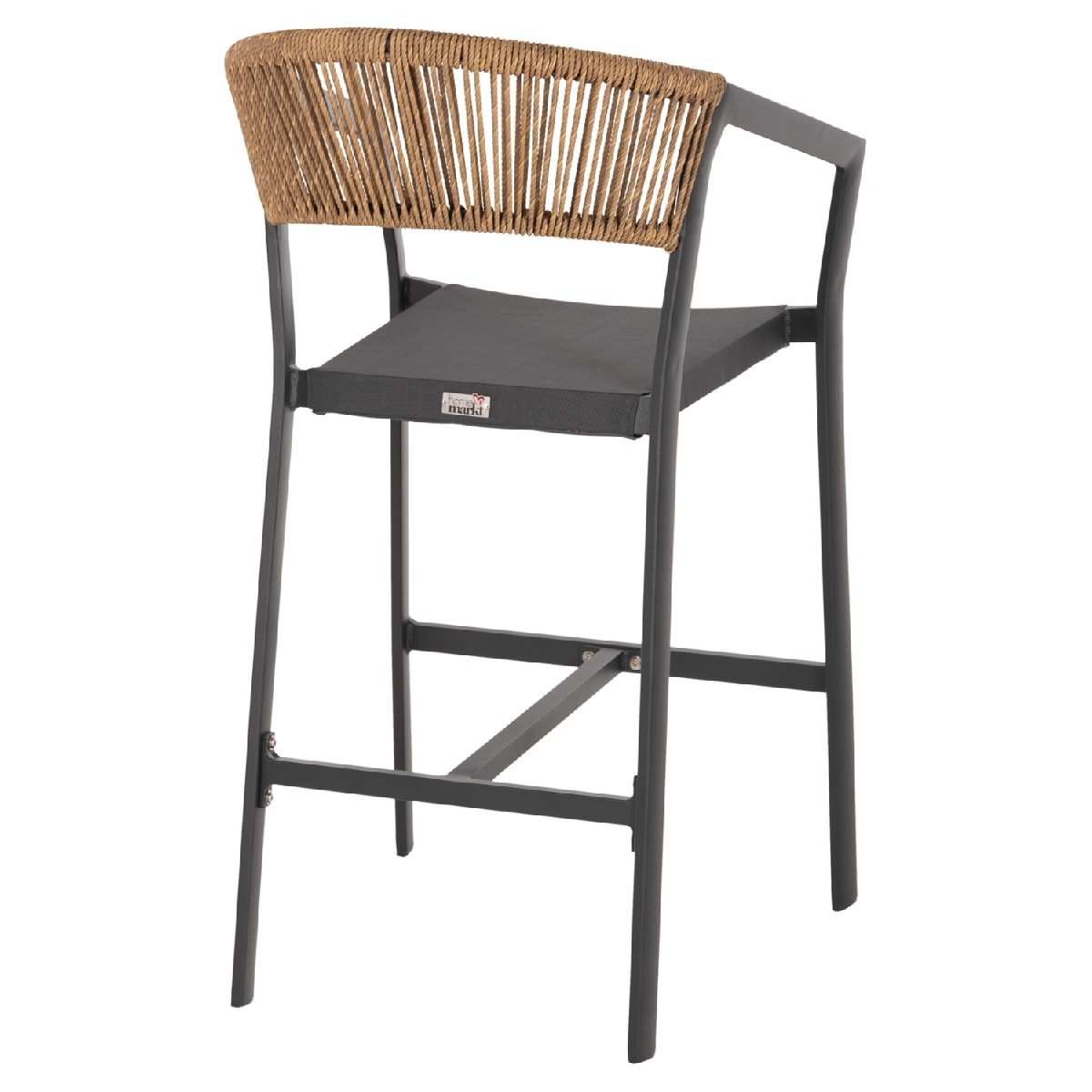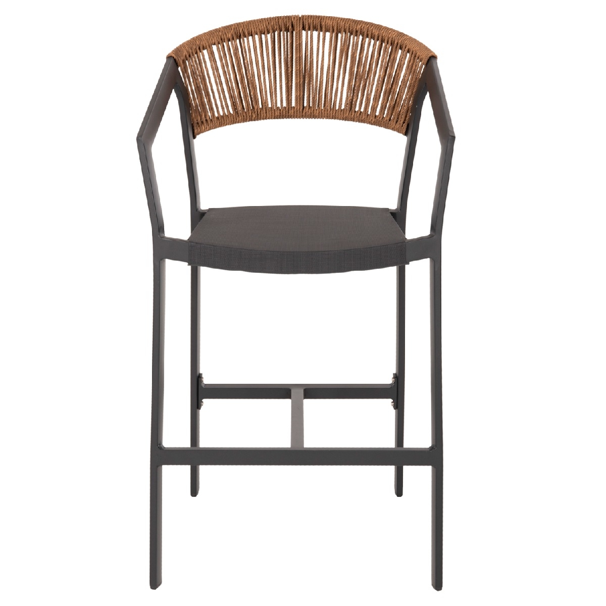 Η πλάτη του σκαμπό είναι επενδυμένη με πολυεστερικό RATTAN. Στα περισσότερα έπιπλα κήπου και γενικά σε έπιπλα για εξωτερικούς χώρους χρησιμοποιείται συνθετικό υλικό από PVC, δηλαδή τεχνητές ίνες υψηλής ποιότητας. Αυτό δίνει στην κατασκευή εξαιρετική αντοχή και ανθεκτικότητα σε ακραίες συνθήκες ζέστης ή κρύου.<br />