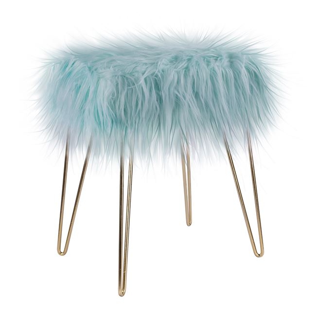 Σκαμπό JAKOB HM8413.04 επενδυμένο με οικολογική γούνα σε τυρκουάζ χρώμα<br />