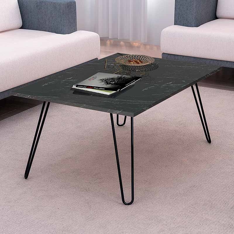 Τραπεζάκι σαλονιού Deren Megapap από μελαμίνη χρώμα μαύρο εφέ μαρμάρου 90x60x46,8εκ.<br></span>