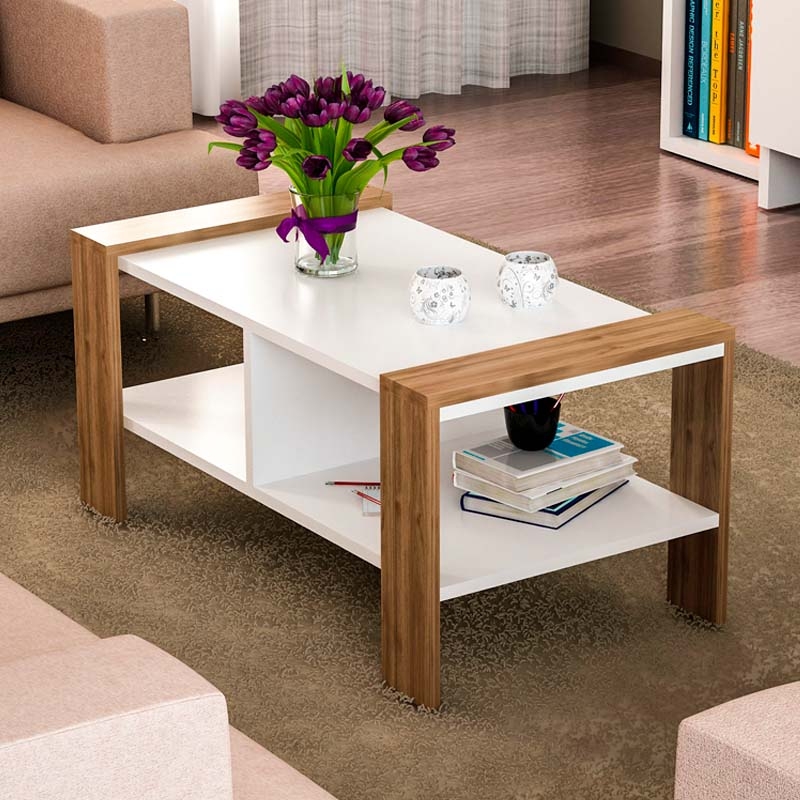 Τραπεζάκι σαλονιού Erika Megapap από μελαμίνη χρώμα λευκό - καρυδί 90x60x42εκ.<br></span>