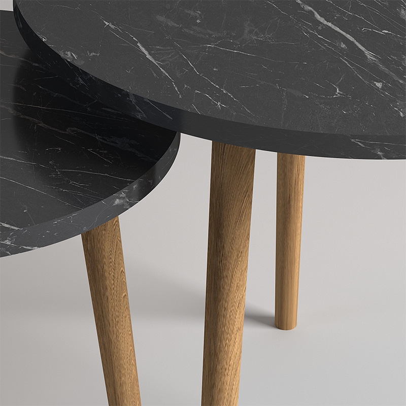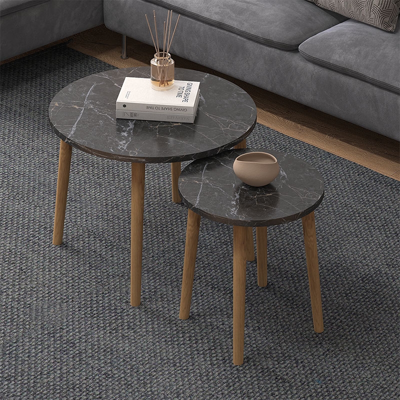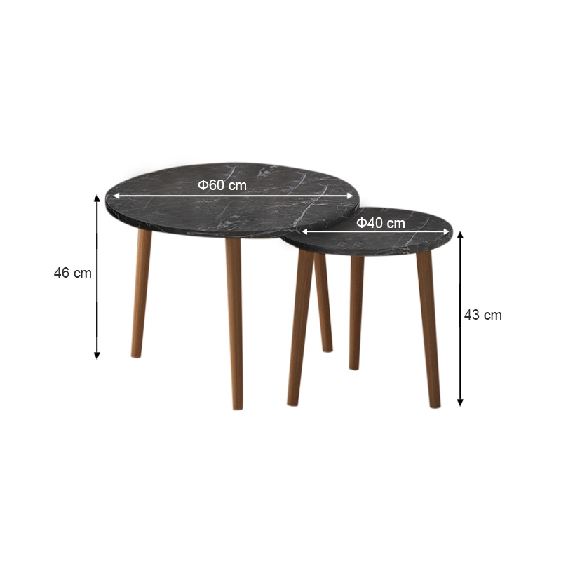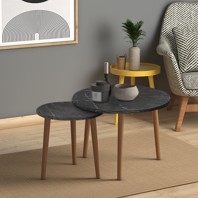 Τραπεζάκι σαλονιού σετ 2 τμχ Roma Megapap χρώμα μαύρο εφέ μαρμάρου 60x60x46εκ.<br></span>