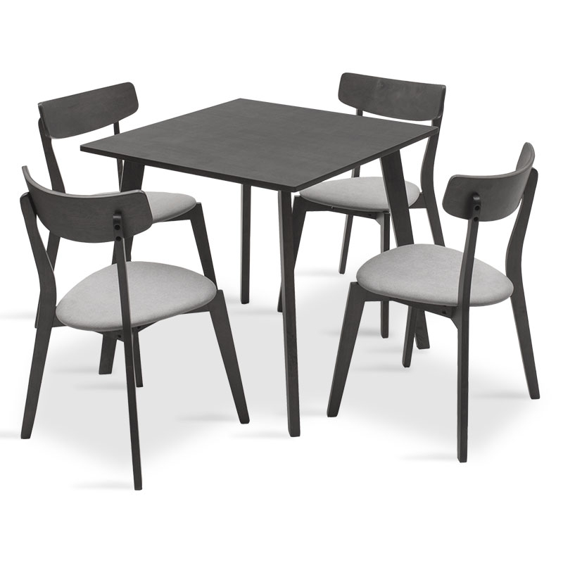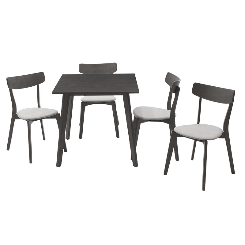 Tραπεζαρία Benson - Toto pakoworld σετ 5τμχ rustic grey - ύφασμα γκρι 80x80x75εκ<br><br><span class="cs8926E06">Η σειρά τραπεζαρίας Benson με κλασσικό σχεδιασμό και εντυπωσιακά χρώματα συνδυάζει την λειτουργικότητα με την ανθεκτικότητα.<br>Μία ευέλικτη κατασκευή, ιδανική για τραπεζαρία αλλά και το σαλόνι του σπιτιού σας. Το σετ περιλαμβάνει ένα τραπέζι και τέσσερα καθίσματα. <br></span> <br><span class="cs5BEC2C28">Τεχνικά χαρακτηριστικά τραπεζιού:</span><br>*Σώμα και επιφάνεια κατασκευασμένα από MDF πάχους 18 χιλ με επένδυση καπλαμά χρώματος rustic grey, υψηλής ποιότητας και ανθεκτικότητας στον χρόνο.<br>*Στήριξη σε τέσσερα πόδια κατασκευασμένα από MDF πάχους 18 χιλ με επένδυση καπλαμά χρώματος rustic grey, υψηλής ποιότητας και ανθεκτικότητας στον χρόνο. Διάσταση ποδιού: 6 εκ χ 2,8 εκ<br> <br>Διάσταση προϊόντος:<br>Μήκος: 80 εκ.<br>Πλάτος: 80 εκ.<br>Ύψος: 75 εκ.<span class="cs8926E06"><br><br><span class="cs5BEC2C28">Τεχνικά χαρακτηριστικά καρέκλας:</span><br><span class="cs8926E06"><span class="cs8926E06">*Πλάτη και έδρα κατασκευασμένες από rubber wood πάχους 18χιλ χρώματος rustic grey. Η έδρα επενδύεται με ανθεκτικό ύφασμα υψηλών αντοχών χρώματος γκρι.<br>*Ο σχεδιασμός της πλάτης ακολουθεί την σπονδυλική στήλη, στηρίζοντας τη μέση με τη καμπύλη μορφή της. <br>*Στήριξη σε ενισχυμένο ξύλινο σκελετό από rubber wood που καταλήγει σε 4 πόδια 25χιλ χρώματος rustic grey, εξαιρετικής ποιότητας και αντοχής στο βάρος και στο χρόνο.</span></span></span><br><span class="cs8926E06"><span class="cs8926E06"><span class="cs8926E06"><span class="cs8926E06">*Το ξύλο από καουτσούκ είναι φιλικό προς το περιβάλλον, καθώς προέρχεται από ήδη υπάρχουσες φυτείες. Το rubberwood είναι πολύ ανθεκτικό και το γεγονός ότι παρουσιάζει ελάχιστη συρρίκνωση το καθιστά βασικό υλικό στην κατασκευή επίπλων και με μεγάλη αντοχή στον χρόνο.</span><br><br></span><span class="cs5BEC2C28">Διάσταση προϊόντος<br></span><span class="cs8926E06">Μήκος: 45εκ.<br>Πλάτος: 48εκ.<br>Ύψος: 78εκ.</span><br><span class="cs8926E06">Ύψος έδρας: 45εκ</span><br><br>Παρατηρήσεις:<br>Το προϊόν παραδίδεται αμοντάριστο, σε εργοστασιακή συσκευασία και με αναλυτικό οδηγό συναρμολόγησης. <br>Η χρωματική απόχρωση του προϊόντος ενδέχεται να διαφέρει ελαφρώς σε σχέση με την φωτογραφική απεικόνισή του στην οθόνη σας</span></span><br>