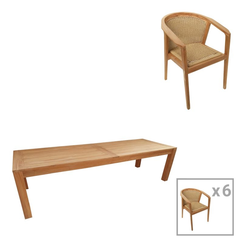 Τραπεζαρία Granny-Pablo pakoworld σετ 7τεμ σε φυσική-μπεζ απόχρωση 240x100x76εκ