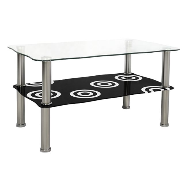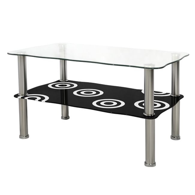 ΗΜ0087 ΤΡΑΠΕΖΙ ΣΑΛΟΝΙΟΥ-----Ανακαλύψτε το μοντέρνο τραπεζάκι σαλονιού GRABES. Διαθέτει 2 γυάλινες επιφάνειες και μεταλλικά χρωμιωμένα πόδια. Η επάνω επιφάνεια είναι διάφανη, ενώ η κάτω επιφάνεια είναι μαύρη με όμορφα κυκλικά σχέδια. Το γυαλί σε συνδυασμό με τα χρωμιωμένα πόδια προσδίδουν την αίσθηση της καθαρότητας και της απλότητας στον χώρο.<br />