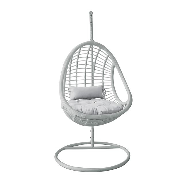 Twist κρεμαστό κάθισμα με λευκό wicker μεταλλικό σκελετό και λευκό μαξιλάρι 105x200 εκ