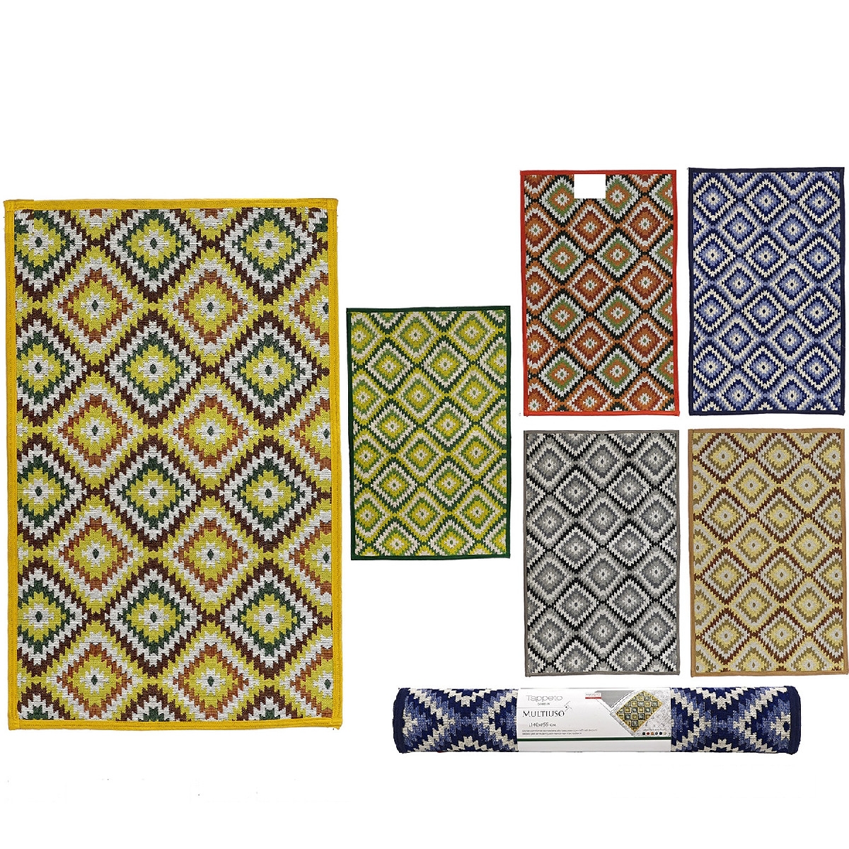 <p>Διακοσμητικό χαλί τύπου Γκομπλέν με γωνιακό σχέδιο, ιδανικό για κάθε χώρο του σπιτιού. Υψηλής ποιότητας υλικά προσφέρουν ανθεκτικότητα και στυλ.</p><p><em>Η επιλογή χρώματος γίνεται τυχαία με βάση το διαθέσιμο απόθεμα.</em></p><br/><br/><p>Χαλί</p><ul><li><strong>Υλικό</strong>: 70% πολυεστέρας/30% βαμβάκι</li><li><strong>Χρώμα</strong>: Πολύχρωμο</li><li><strong>Διαστάσεις</strong>: 55x140cm</li><li>τύπου γκομπλέν</li><li>σε 6 χρώματα</li></ul><br/><br/><p><b>Διαστάσεις:</b><br/>Συνολικό Βάρος: 1 κιλά <br/>Συνολικός όγκος: 0.0046 κυβικά μέτρα <br/></p>