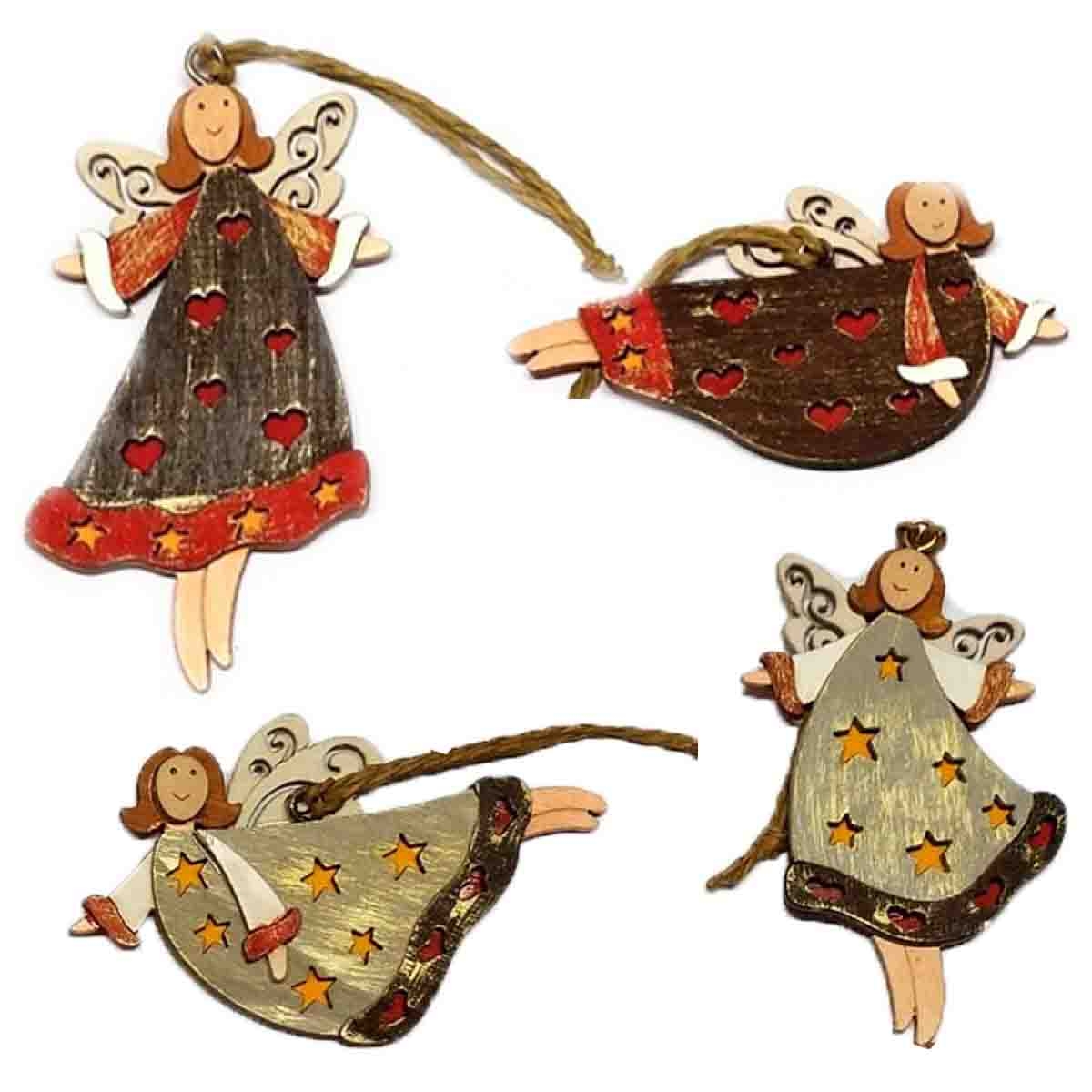 Χριστουγεννιάτικα στολίδια ξύλινα fairies σετ των τεσσάρων 10 εκ