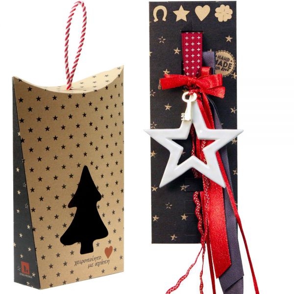 Χριστουγεννιάτικο χειροποίητο πορσελάνινο γούρι 2025 με λευκό αστέρι